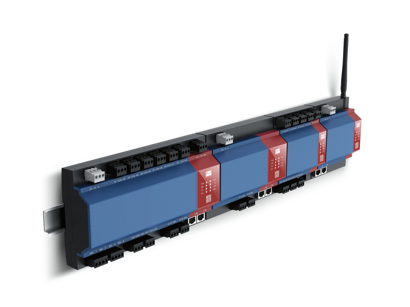 This DDC controller serves to simplify building automation processes. The design and architecture of the device are characterised by a modular concept that, together with the graphical programming interface, enables convenient and intuitive operation and facilitates commissioning and maintenance. The control unit can be connected to the cloud, making troubleshooting more efficient. In terms of design, it features the brand colours red and blue, which represent an interpretation of the connection between temperature and technology.