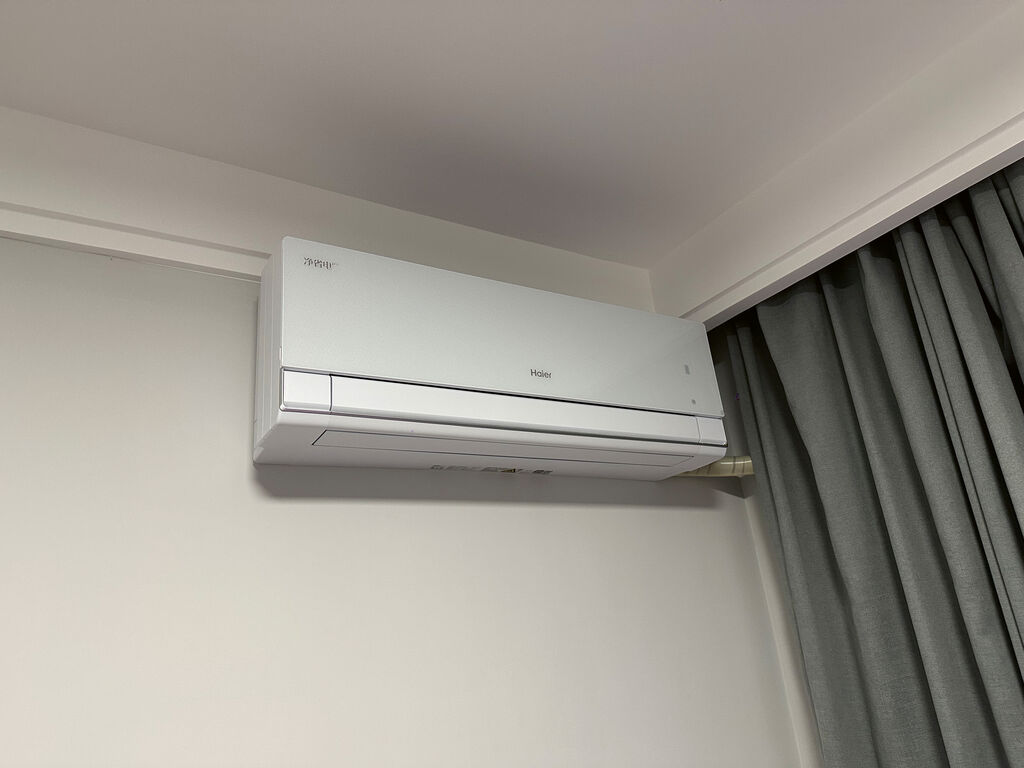 The Double-Outlet Wall Mounted Air Conditioner is a wall-mounted air conditioning unit with dual air outlet. The separate air duct prevents a direct flow of cold air on the one hand and ensures an even distribution of warm air on the other hand. The display integrated flush into the smooth front shows the respective mode – heating, cooling, ventilation or dehumidification – as well as the current temperature during operation. Precise lines and a clear geometry characterise the device, which is available in different colours.