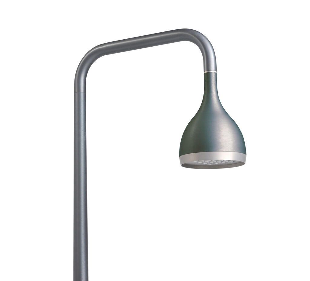 DROP LED combines innovative design with modern technology. As a result, this light is environmentally friendly, fits easily into its surroundings and cuts energy consumption. Its shape is inspired by nature and resembles a falling drop of water. The pole merges seamlessly with the side arm and, from there, with the luminaire. The light is made entirely of anodised aluminium, is easy to maintain and suitable for lighting pedestrian areas, roads, squares, parks and green zones.