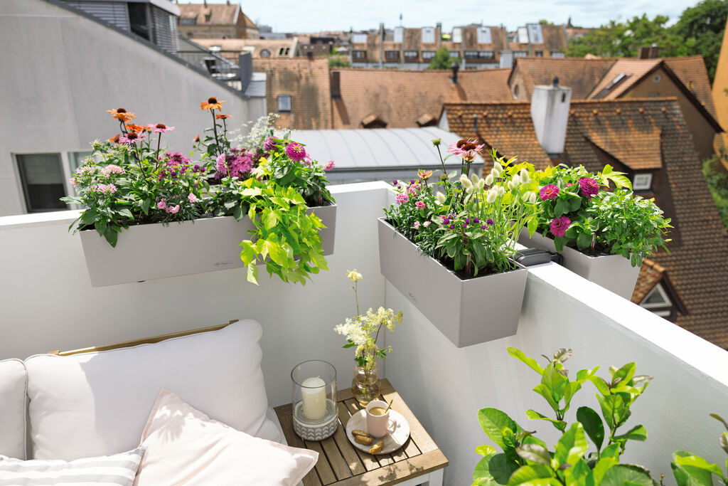As a practical solution for balcony greening, the DUO box holder impresses with its versatile design and high load-bearing capacity.