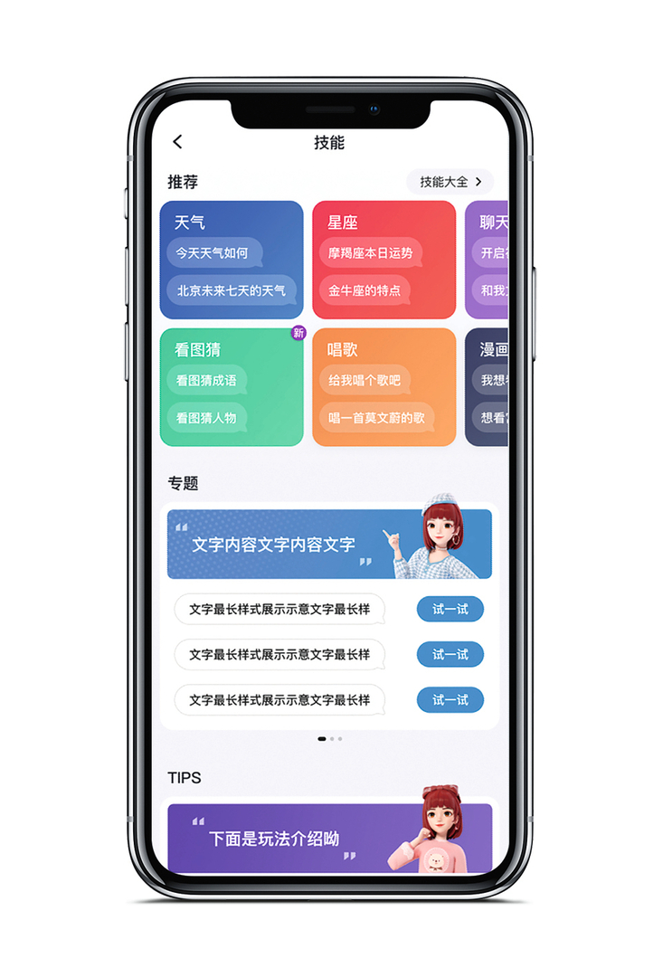 The Duxiaoxiao mobile app is a digital AI assistant whose main feature is an animated human figure that interacts with the user. It responds to voice commands, can answer questions, recognise objects and hold a conversation. Users can change the clothes of the manga-style figure and customise its appearance according to their preferences. In combination with the user interface in bright pastel and candy colours, the app offers a high level of emotionality, so that even children and users with little affinity for technology have easy access to AI-supported programs.