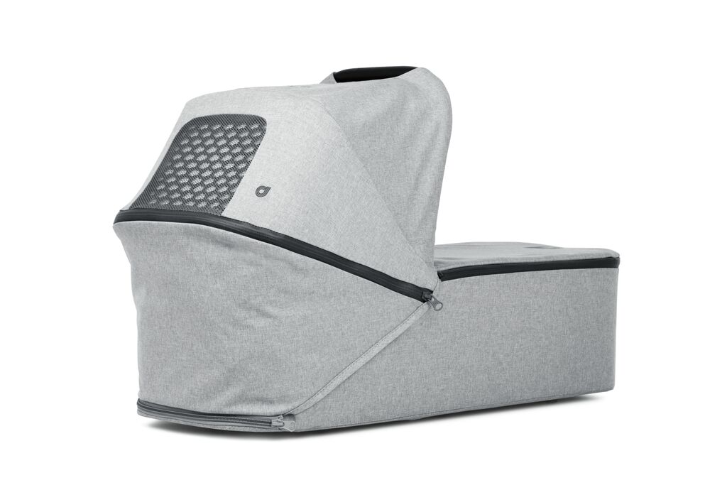 Equipped with an air purifier, the carrycot Dymla ONE effectively keeps away polluted air, viruses and bacteria from newborns. The filter system is controlled with only one switch and operated using a power bank. Thanks to its minimalist and compact design, the carrycot is easy to carry and can be combined with a lot of strollers. The canopy is completely foldable, thus enabling space-saving storage.