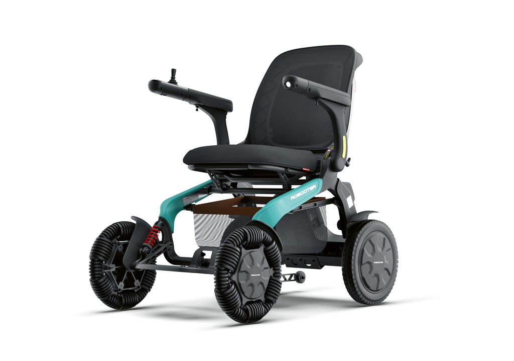 The E60 Pro Powerchair is an electric wheelchair optimised for outdoor use. Large wheels and independent front wheel suspension ensure off-road manoeuvrability and make it possible to overcome inclines and obstacles. The omnidirectional front wheels also enable sideways movement. The wheelchair can be folded compactly and stowed away in two steps. The seat design with adjustable backrest and armrests offers customisable comfort. A waterproof bag and a mesh compartment allow up to 10 kg of luggage to be transported.