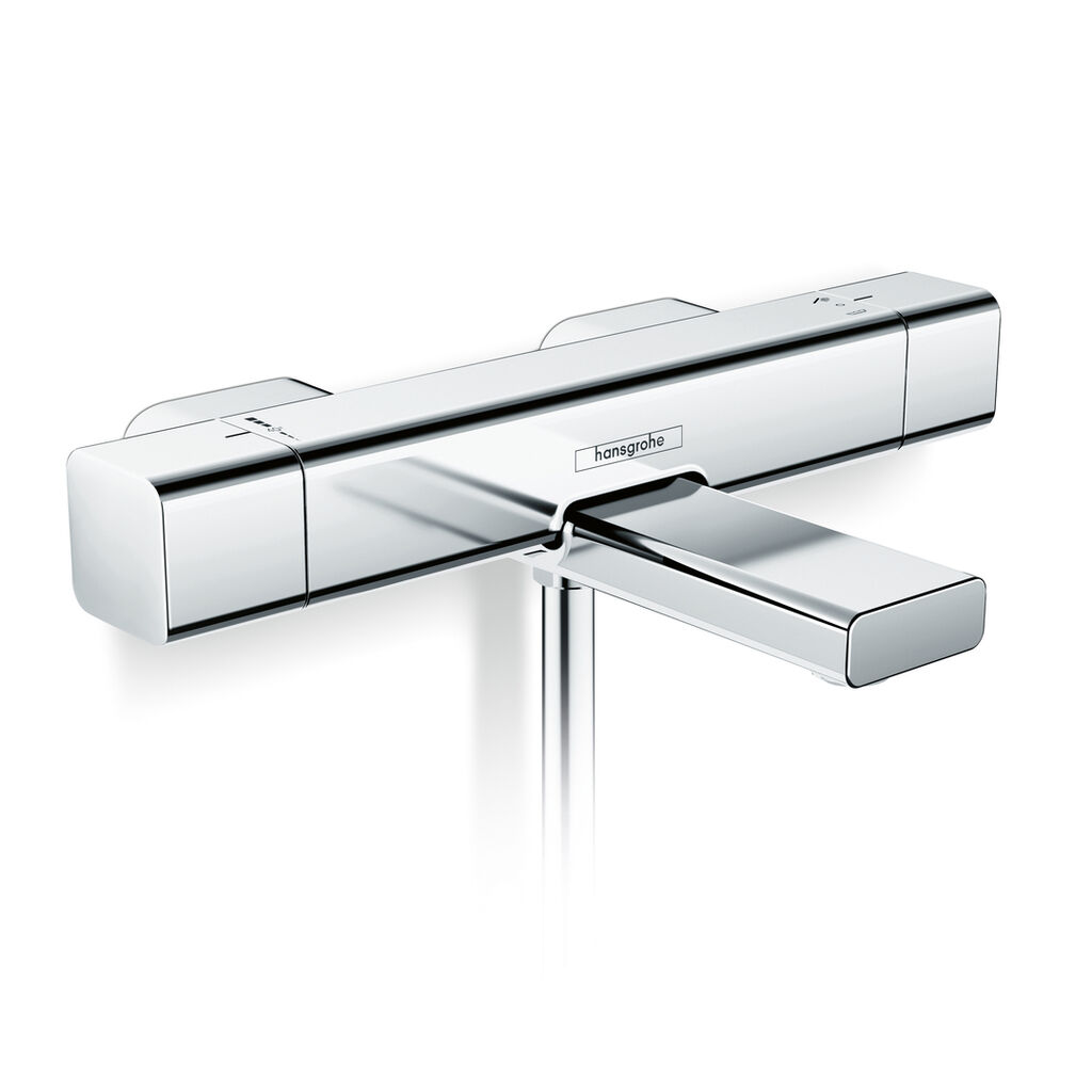 Distinctive contours lend the Ecostat E WAP bathtub thermostat a modern appeal. The rosettes are positioned almost invisibly behind the thermostat, supporting a clear design style. The innovative CoolContact cooling technology and the integrated SafetyStop ensure a safe bathing experience, as they prevent the thermostat housing from heating up and ensure that the water from the shower is pleasantly tempered and not too hot.