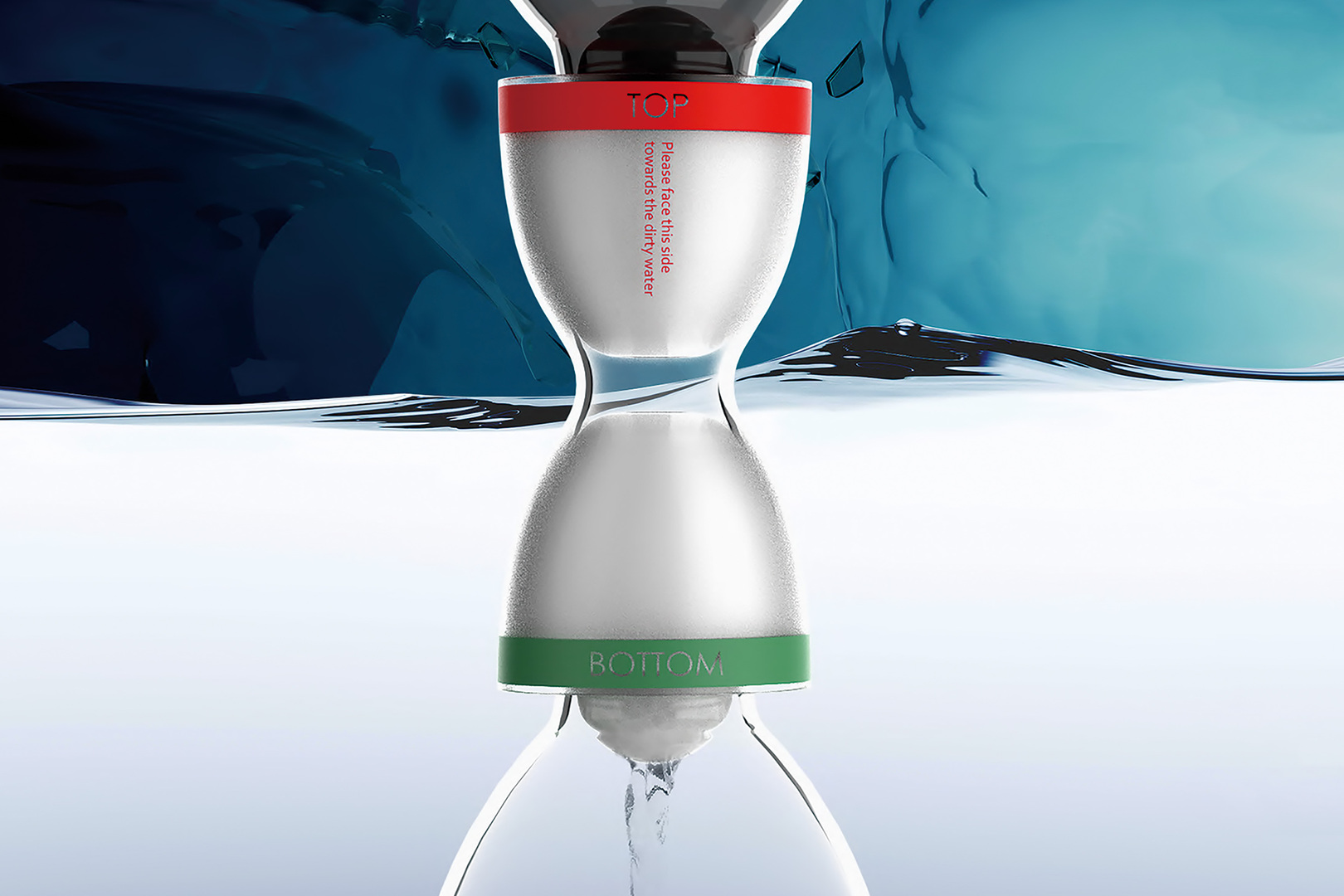 The unique two-way connector is inspired by the shape of an hourglass and fits on most plastic bottle openings. It can be used with two bottles at once without the need for additional accessories or filtration devices. The two-way filter element provides more thorough filtration, and the back-flush function (activated by squeezing the bottle) extends the filter element’s service life. Edrop can quickly provide clean water to a large number of people and can be easily stored for later use.