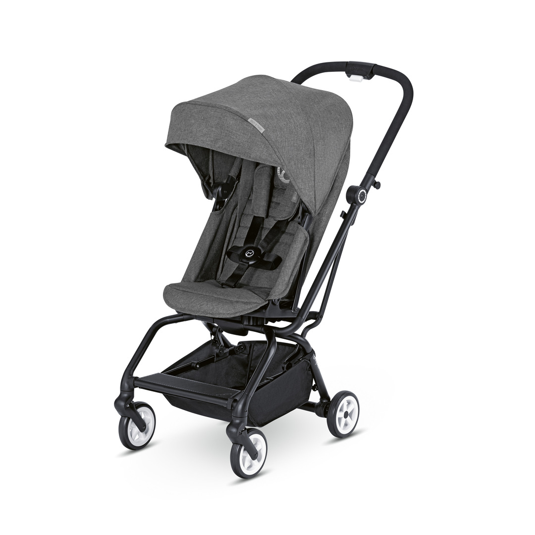 The prominent feature of the Eezy S Twist pushchair, from a functional viewpoint, is its rotatable seat unit. This makes it possible to change the child’s seating position within seconds. A simple press of a button releases the locked seat and allows it to be rotated by 180 degrees with one hand. Moreover, a one-handed folding mechanism lets the light buggy be folded up so compactly that it can be stowed in the cabin luggage rack of an aircraft. The Eezy S Twist may be combined with various attachments and therefore used for a considerable amount of time.