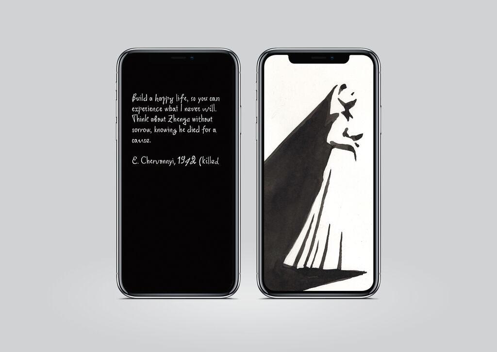 Endless Letter is a graphic series featuring hundreds of excerpts from original letters written during the Second World War, along with illustrations by students from the RANEPA School of Design in Moscow. Emotional quotes from frontline missives were shared line by line in stories, creating a kind of “endless letter” with an original score by the Russian composer Max Makarychev. These quotes were carefully selected from thousands of letters and are displayed in a specially designed typeface. Each written symbol is a precise copy of handwriting inscribed by veterans of the Second World War on the walls of the Reichstag building in 1945.