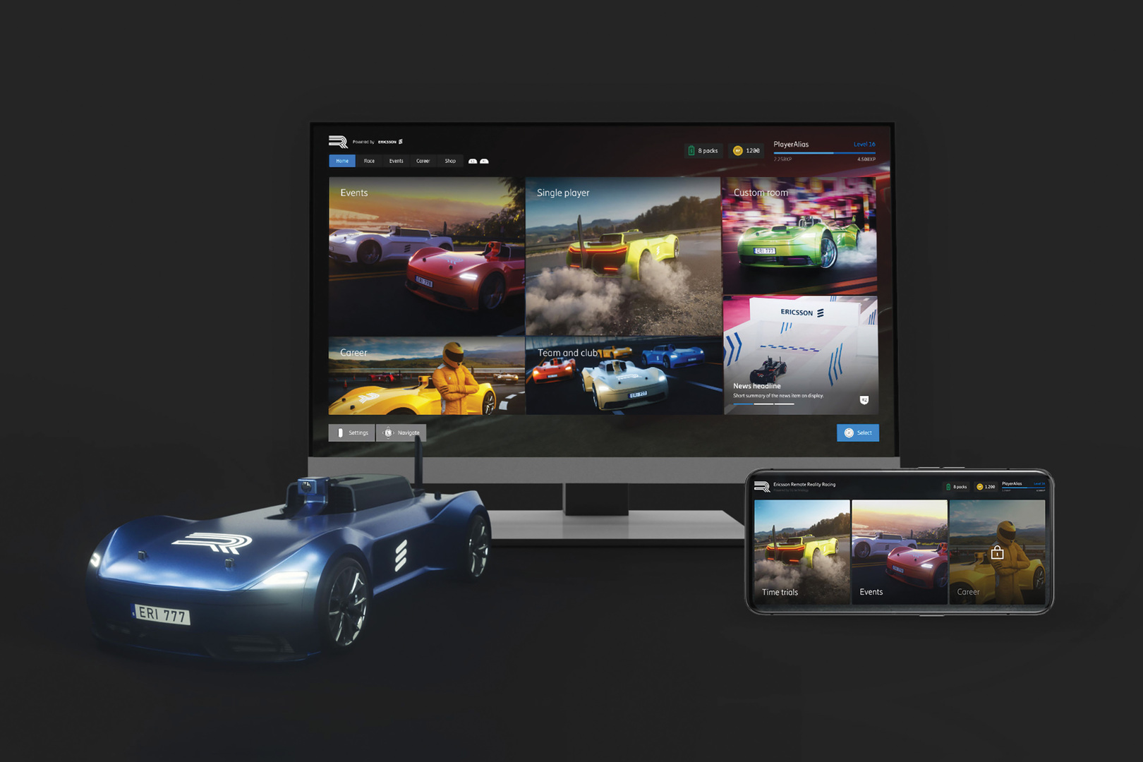 The 5G technology allows for low latency and haptic feedback, resulting in a more realistic racing experience where you can feel the wheels on the ground. E3R’s UI was created from scratch and leverages the Ericsson Design System — a system originally designed for enterprise software but adapted in this case for game design. This enabled development to be completed in a record-breaking three months.