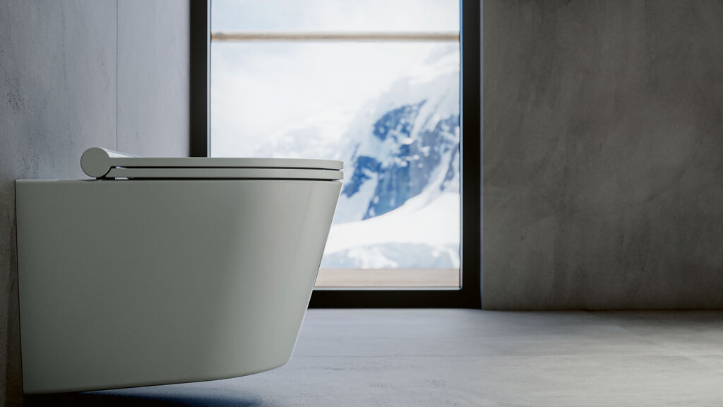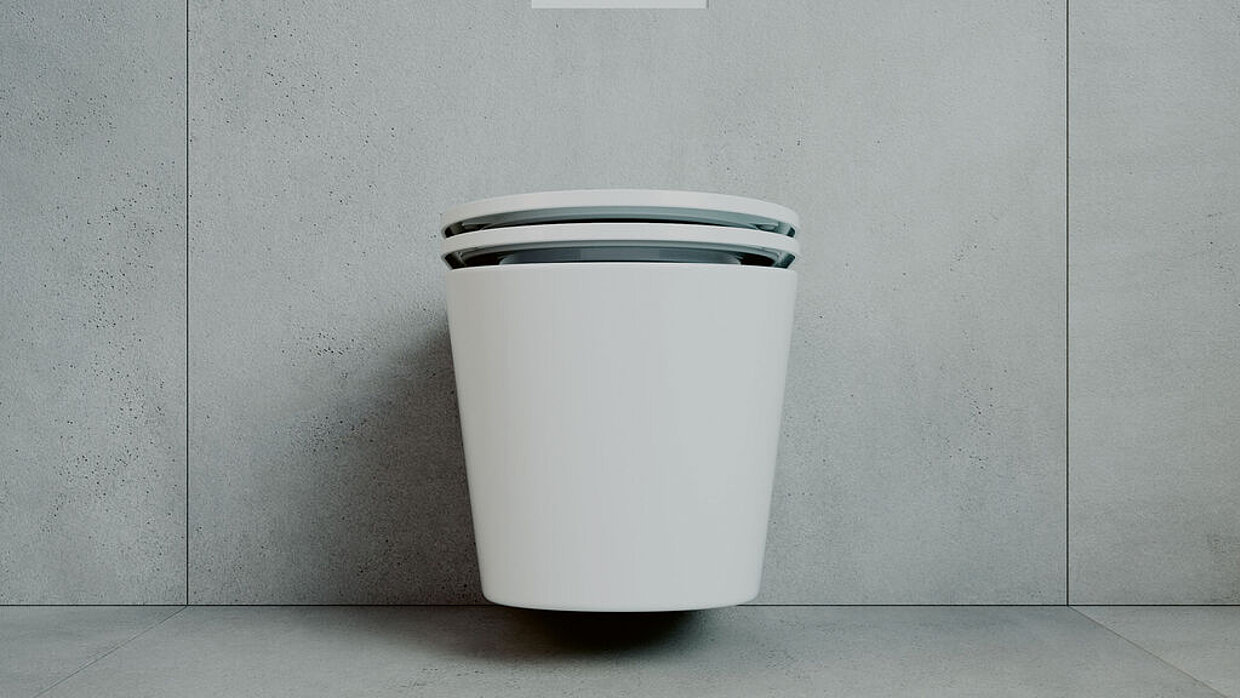 The Evac Optima 7 toilet is equipped with innovative vacuum technology. Thanks to the negative pressure generated, only 1.2 litres of fresh water are required per flush. At the same time, this technology enables flexible design of sanitary facilities, as the toilet does not have to be installed directly above the wastewater connection. The rimless design, seamless construction and hidden fixings make cleaning easier. The antimicrobial surface, which inhibits bacterial growth, also contributes to hygiene.