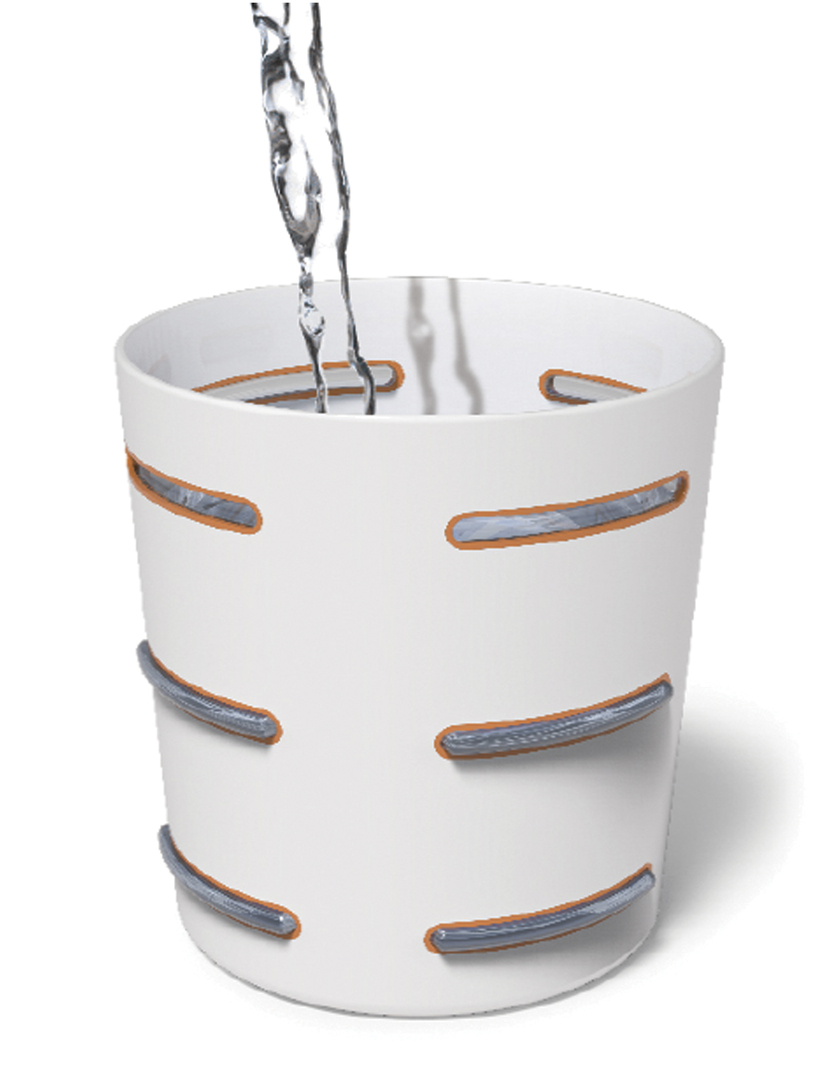 The Feelable Cup solves this problem with the principle of water pressure. Several grooves are cut into the surface all around the cup. The groves are then lined and sealed with a tubing membrane. This membrane bulges through the grooves when water fills up the cup and deflates when the cup is emptying. Users now know the amount of water in the cup just by feeling the cup, without having to look at it. The entire design requires no special technology or adaptation.