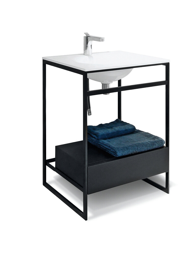 The design of the washstand Fine is based on a distinct and plain framework. By forgoing cover plates, space is becoming more generous. Technical elements like screws remain discreetly concealed, though. The transition between the edge of the basin and the cover plate features a discreet design so that they aesthetically almost seem to be a unit. The basin is 120 mm deep so splashing is avoided. The washstand can be packed to a manageable size and easily assembled on site.
