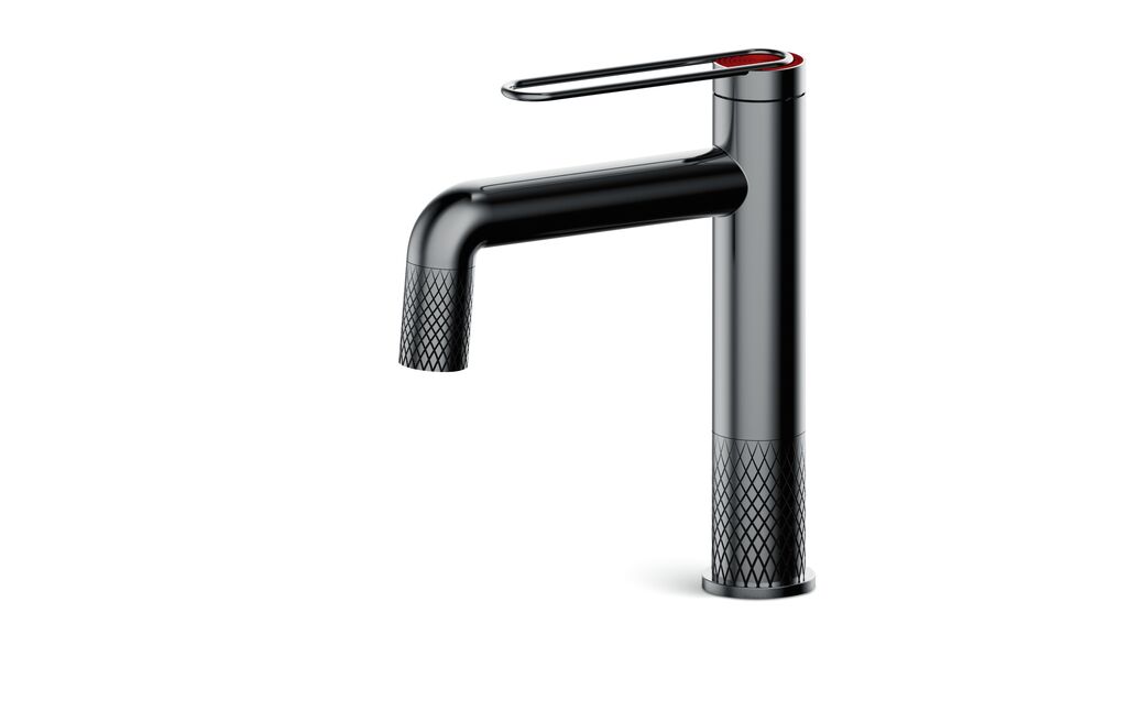 The appearance of the FLAME basin mixer is characterised by its dynamic language of form and the skilful use of a newly developed texture.