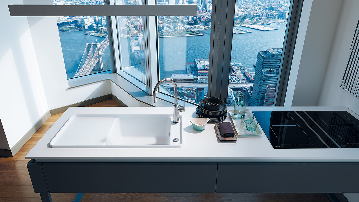 This multifunctional kitchen scale is a battery-operated lightboard that creates a variety of mood lighting effects at the touch of a button. The integrated high-tech scales can weigh ingredients and food up to 10 kg. The perfectly fitted soft pad made of silicon turns the lightboard into a perfect chopping board. As an ambient cover, it also fits perfectly over the sink bowl by the same manufacturer. The lightboard is available in black or in champagne.