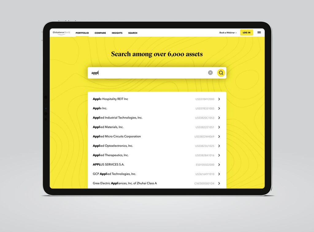 Globalance World is a public platform that invites users to explore and understand the social, environmental and financial impacts of investments in the world. The starting point is an interactive 3D globe that gives users a sense of the climatic impact of a particular investment. The user interface is uncluttered, with a generously spaced menu layout to facilitate orientation. Data is represented interactively in a pebble shape to present complex relationships in an understandable manner. This ensures easy access for both financial experts and laypersons.