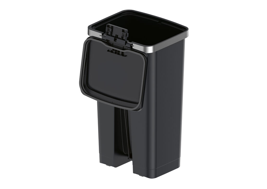 The Hana Step & Hana Slim Step waste-bins feature decorative details and cosy colours which enable them to easily blend into living spaces. A brushed metal frame contrasts with the matt plastic body of the smooth or grooved container variants. High-quality embedded wheels and an ergonomic stainless-steel pedal ensure user convenience and accessibility for people with physical limitations. Made from recycled materials, the one-click assembly of the bins is a straightforward solution.