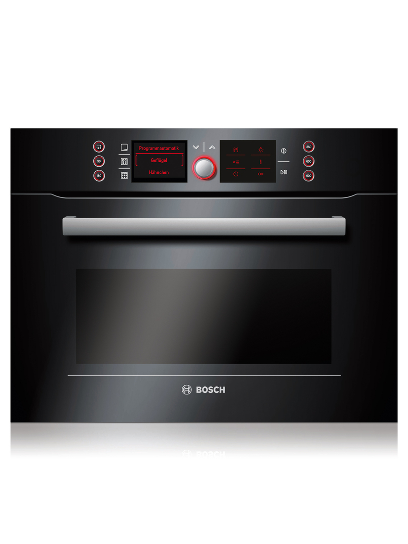 The unobtrusive front of the appliance conceals the integrated arrangement of conventional heating technology and a microwave. The compact oven offers numerous automatic programmes including a self-cleaning function. It is suited for modern open-plan kitchen environments. Due to its clear structure, the striking and intuitive user interface characterises the device range. Selective material highlights complete the appearance.