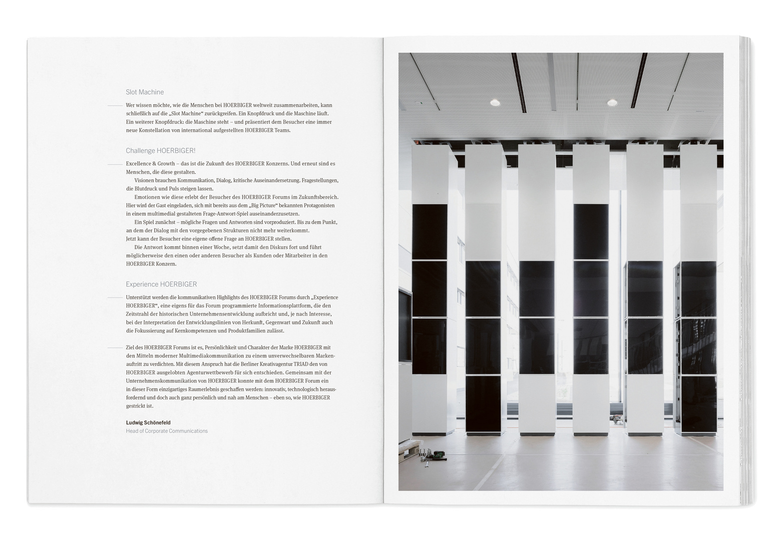 After moving to a new location, Christiana Hörbiger, family shareholder of the HOERBIGER Holding AG, issued two illustrated books. The challenge was to transfer the personality and spirit of the 85 year old former site into the future. The first book captures the unique charm of the Group’s previous head office and the bording production facilities in architectural photographs – supplemented by memories of selected employees whose contributions can be either read in the book or listened to via QR codes. The second book deals with the new site, documenting its construction and settling. It also features interviews with employees who now share their thoughts for the future.
