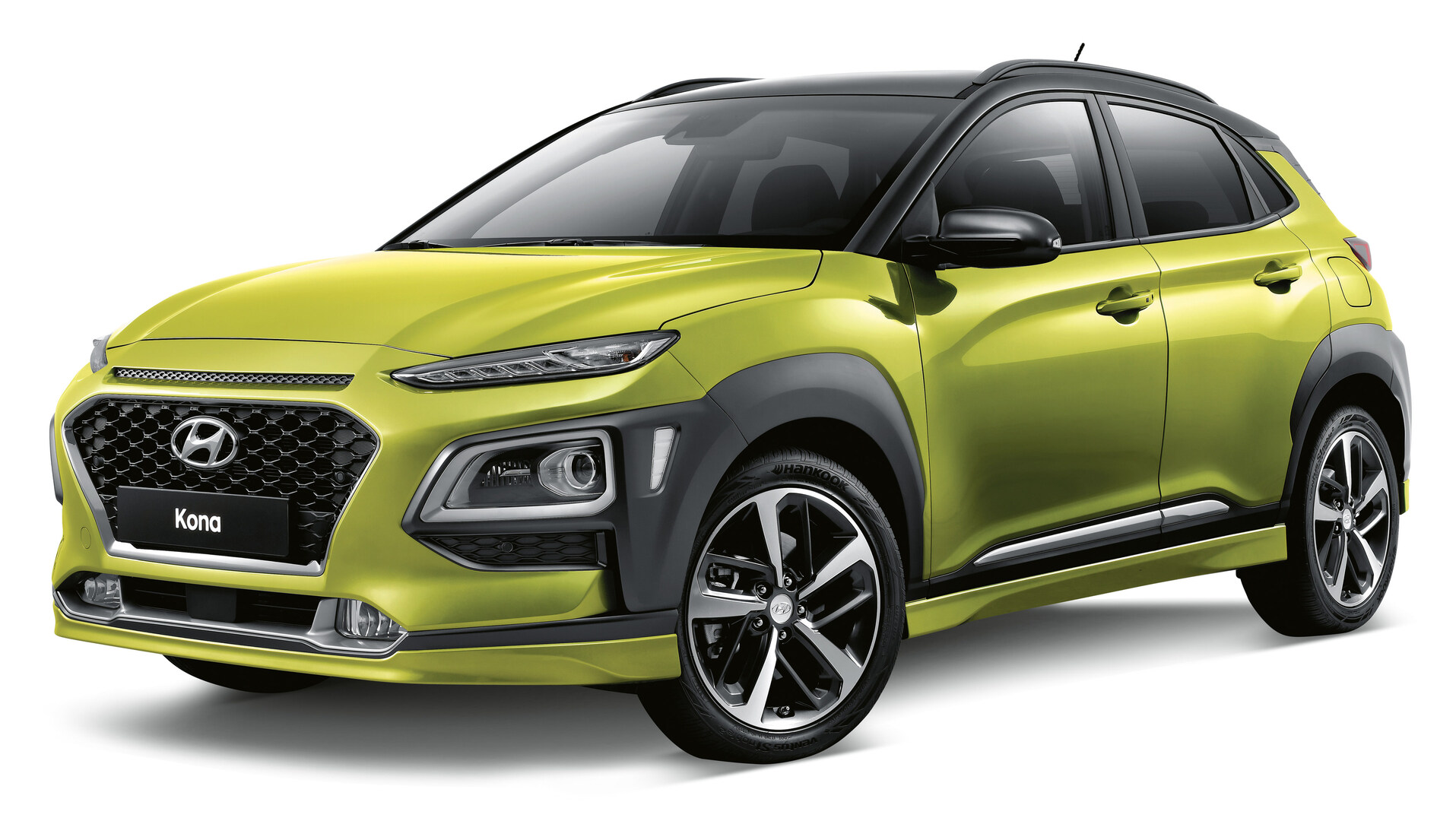 The Hyundai Kona attracts attention with an expressive frontal design. To the striking cascading grille comes a concise arrangement of lighting units, whereby the LED daylight driving lights are located above the headlamps. The Kona’s dual-hued roof and its ten distinctive paints offer various colour combinations, and thus many options for personalisation. The 18” alloy wheels and wide wheel arches contribute further to the powerful, self-confident impression of this car.