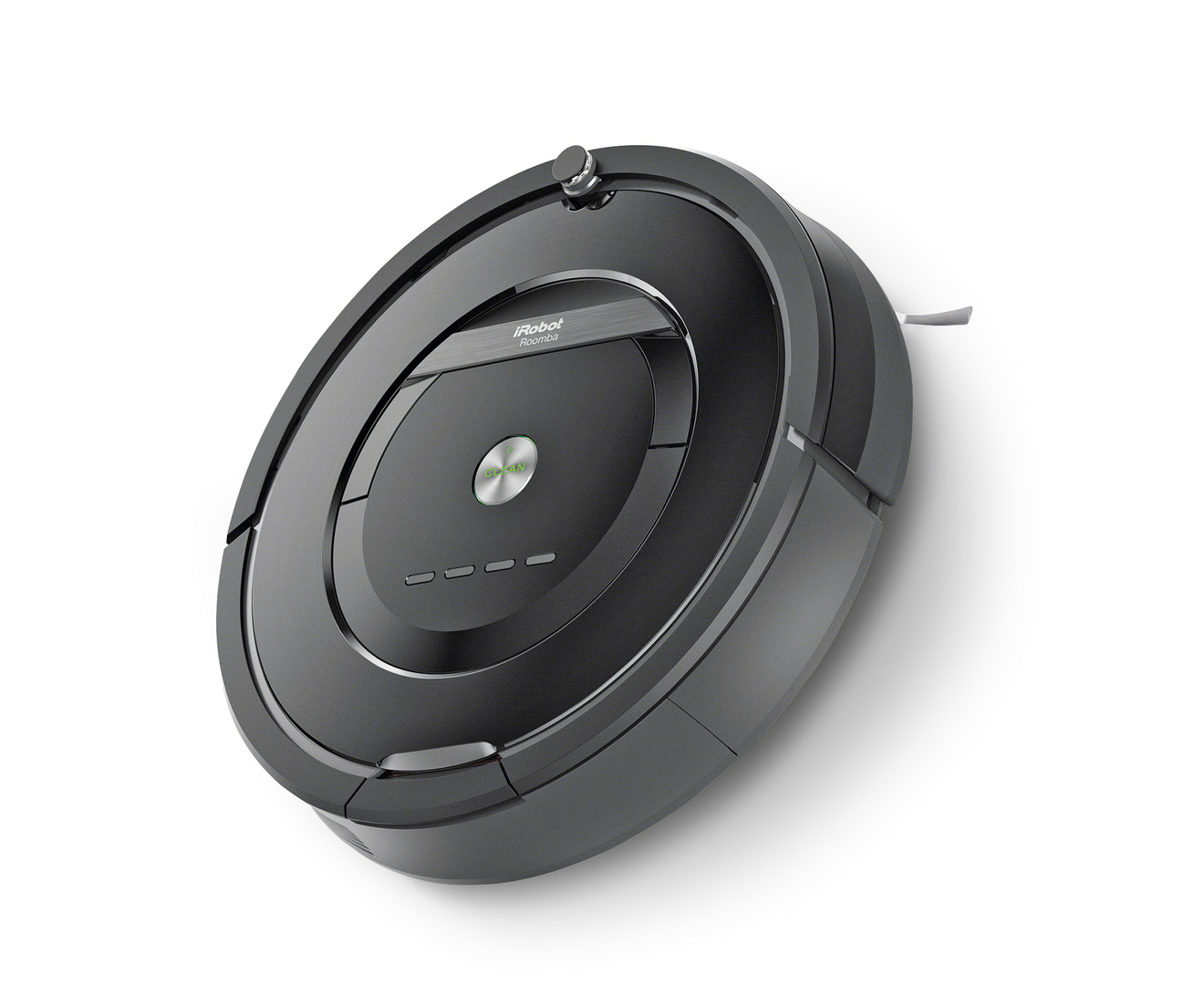 The Roomba 880 vacuum cleaning robot uses a high performance cleaning system and tangle-free extractors to remove up to 50 per cent more dirt, dust and hairs from the floor than previous models. The robot is activated by pushing the “clean” button. It finds its own way, avoids obstacles, vacuums under furniture and cleans efficiently in every corner, treating particularly dirty areas several times.