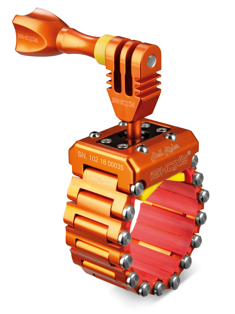 The iSHOXS Hell Rider is a camera mount specifically designed for use on motorcycles. The chain system adapts to all conceivable profiles and also enables mounting in areas that are difficult to reach. It offers high holding force and absorbs vibrations, which is indispensable for action-camera mounts on motorcycles, quad bikes and other motorised vehicles. In this way, the picture and sound quality of the videos is enhanced.