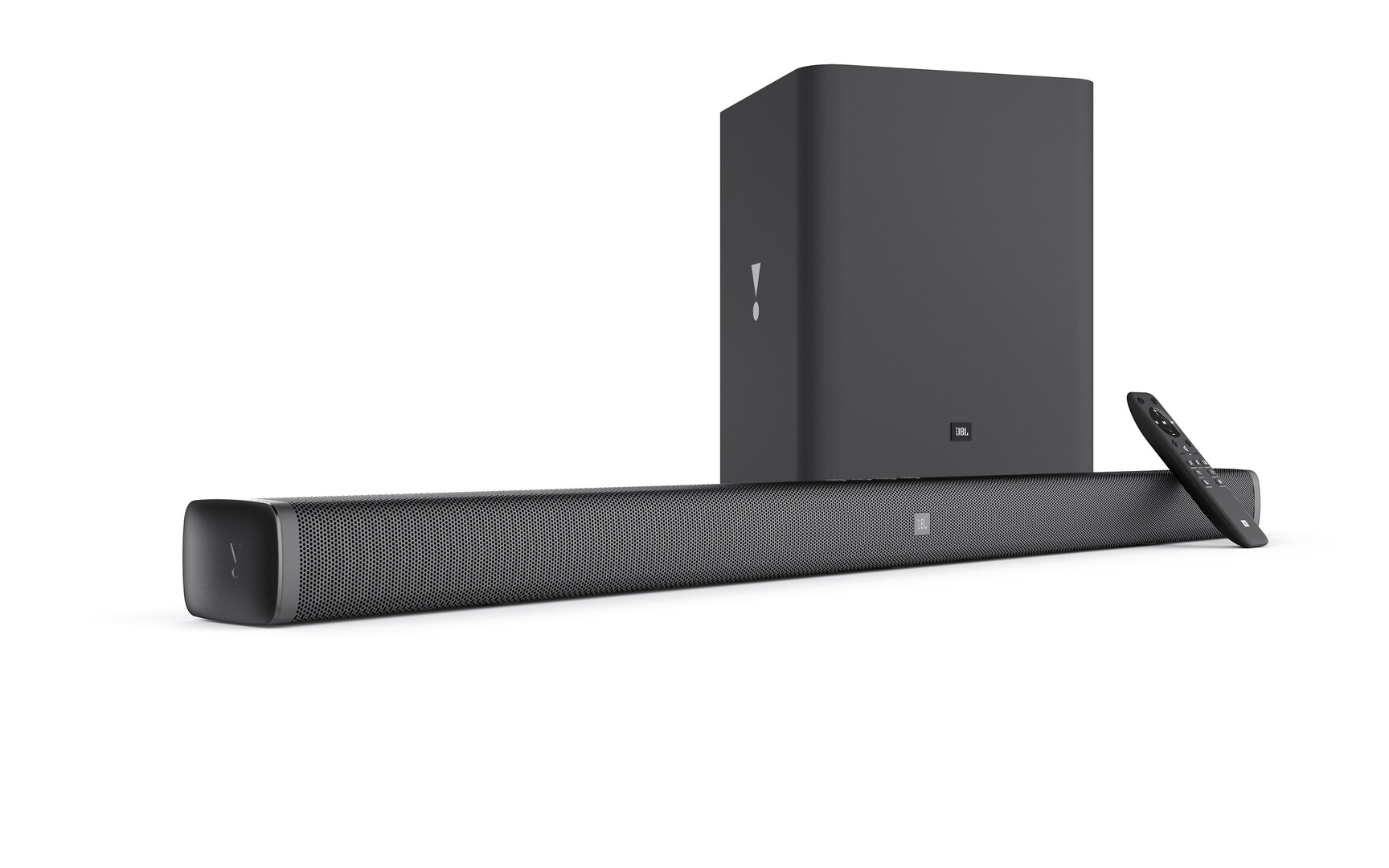The JBL Bar 3.1 soundbar speaker system delivers sound in cinematic quality without compromising on clear dialogue. A dedicated centre channel in connection with a direct 3.1 downmix from 5.1 Dolby Digital sound is responsible for enhanced voice clarity, while the 10” subwoofer produces powerful bass and enriches the home cinema experience. The system is also equipped with Bluetooth for comfortable wireless streaming and includes three HDMI ports for connecting state-of-the-art 4K devices.