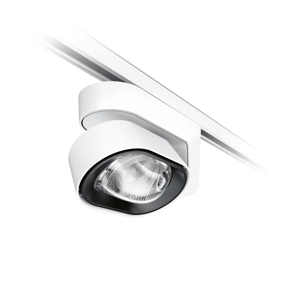 As a lighting solution for the commercial sector, these retail luminaires deliver both area lighting and targeted product lighting. The design of the track-mounted spotlights creates a certain retro look, whereby the white spotlight body with its black inner surfaces emphasises the lens technology. The drop-shaped framed free-form lens allows effective light control, while its diamond look ensures that the spotlights are perceived to be sparkling brightly even when seen from a distance.