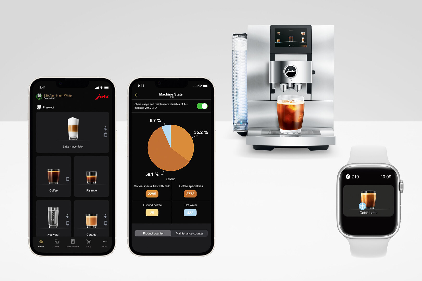 JURA OPERATING EXPERIENCE (J.O.E.®) brings all of the functions of JURA automatic coffee machines to your smartphone. J.O.E.® is an appealing addition to any smartphone or tablet thanks to its self-explanatory design and modern user interface.
