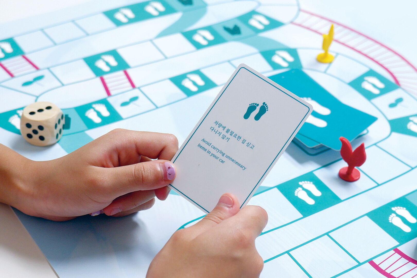 The toolkit takes the children through different learning phases that prompt them to confront and deeply investigate the issue of carbon emissions. In the ‘Discover’ phase, the Carbon Footprint Game builds basic knowledge and helps children learn 30 daily habits that they can implement to reduce their carbon footprint. During the ‘Define’ phase, children are taught to draw customer journey maps and to compare and reflect on both human and planetary emotions. During the ‘Develop’ phase, players use the ‘How Might We’ (HMW) technique to think of better ideas and freely generate alternative solutions.