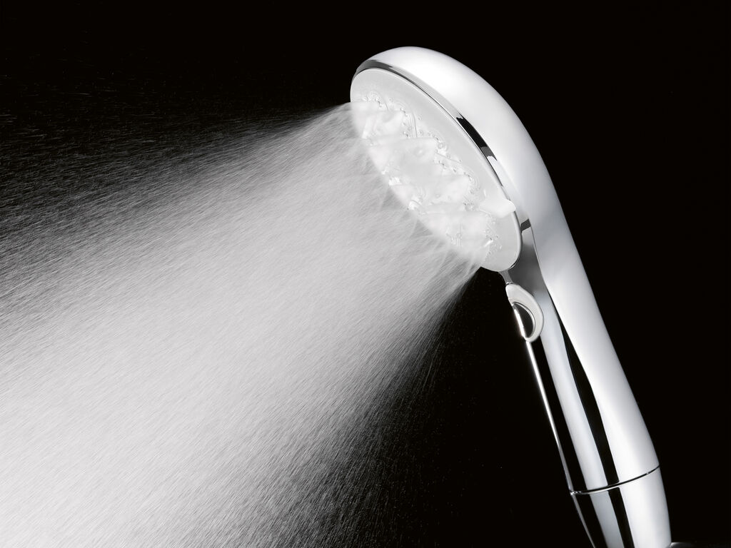 Formal elegance and ergonomics characterise the KIREIST SHOWER MIST showerhead, whose design prioritises skin care and comfort.