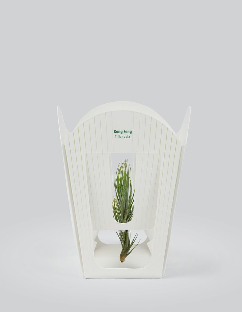 Kong Feng is a packaging for air plants, thus for plants which do not need any soil. It consists of a single piece of PLA-based recycled paper. Unlike conventional models, which also use cotton and plastic in addition to paper, this solution is environmentally friendly. The core element is a holder constructed from four rounded and interconnected straps which acts as cushion and protects the plant during transport. However, the practically designed packaging does not only offer protection and sufficient air supply, but also exudes oriental beauty.