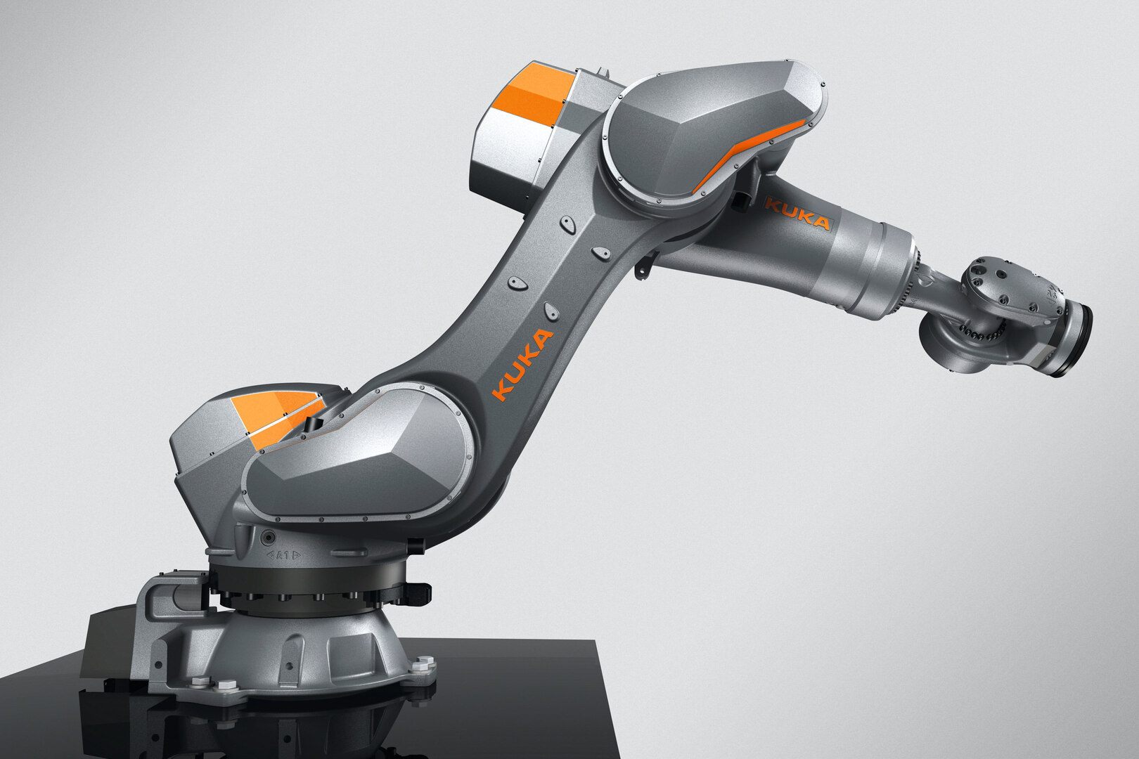 The KR 120 nano F industrial robot was optimised for the extreme conditions found in cleaning plants and washing cells. It is used in foundries and in the automotive industry. The mechanical parts of the robot are completely encapsulated and all electrical cables are installed inside the body. Its interior is pressurised with compressed air to prevent the infiltration of liquids. The coated surface is resistant to lye, acid, heat and corrosion. The design, with its expressive edges and metallic colour scheme, highlights the machine’s toughness.