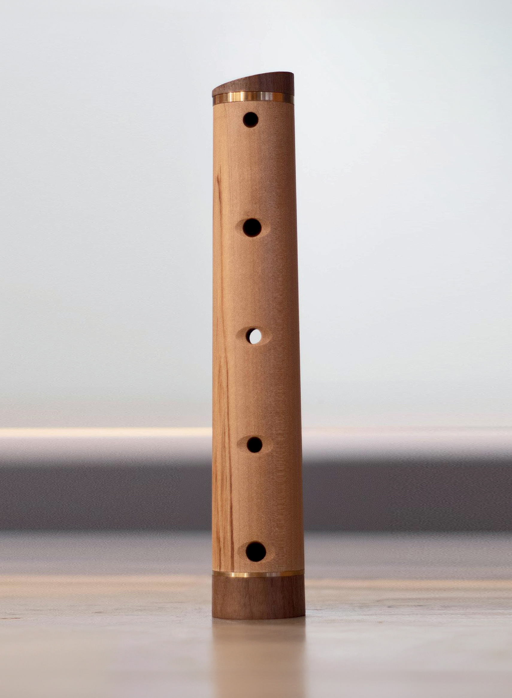 Kūkū revives the fangufangu, an ancient Tongan musical instrument that emulates the coos of the Tongan dove. Developed through an indigenised framework, it features a Pacific Kauri body, an adjustable nose cap, and a tuning dial. Kūkū enhances playability and versatility, harmoniously weaving tangible, visual, and sonic aesthetics, and bridging notions of past, present and future for diverse musical environments. Red Dot Award: Design Concept | Red Dot: Next Gen Award | Concept | Musical Instruments and Sound Technology