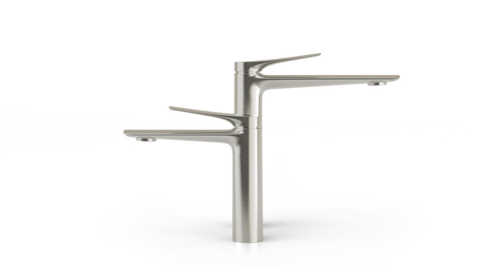 Delicate curves and flowing transitions define the appearance of the Kusabi mixer series. Its elegant design language is based on cylindrical bodies, tapered spouts and gently curved levers. There is a choice of one- and two-piece models in various finishes for either surface or wall mounting. Thanks to the SwitchMix technology, which separates the in-wall components from the handle and backplate, the fittings are easy to install, maintain and replace.