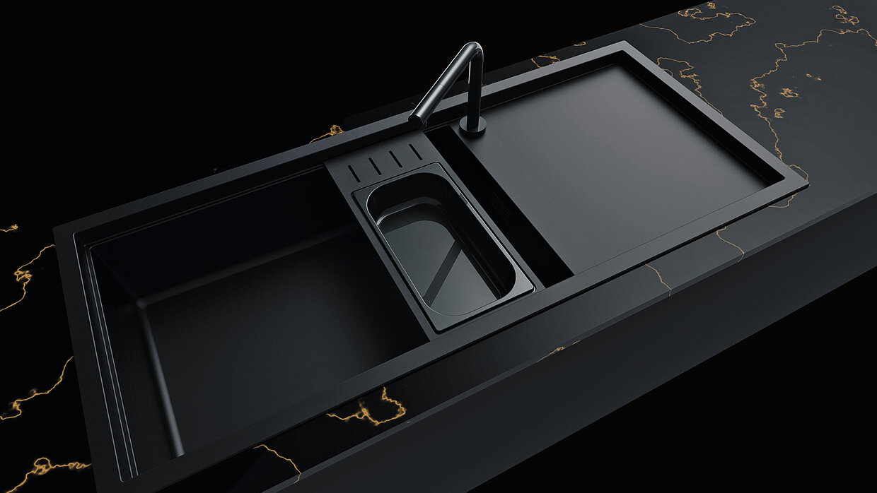 The LAUNDRY washbasin was specially developed for use in utility rooms. It is made from Duratek, a composite material with a velvety matt surface that is particularly resistant to shocks and chemicals. The precise lines of the extra-deep basin combine clear geometry with rounded edges to create a functional, minimalist aesthetic. Thanks to the design of the side walls, the HPL laundry board can be flexibly positioned in the basin and used as a work surface, shelf or cover.