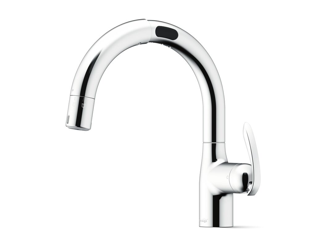 LC is a classic tap with a built-in water filter that stands out due to its spout featuring an attractive gooseneck form. An innovative water filter cartridge is integrated into the arch-shaped spout, maintaining a smooth and appealing surface finish. With a useful rotating nozzle, users can easily switch between four different spray types. A sensor facilitates contactless operation.