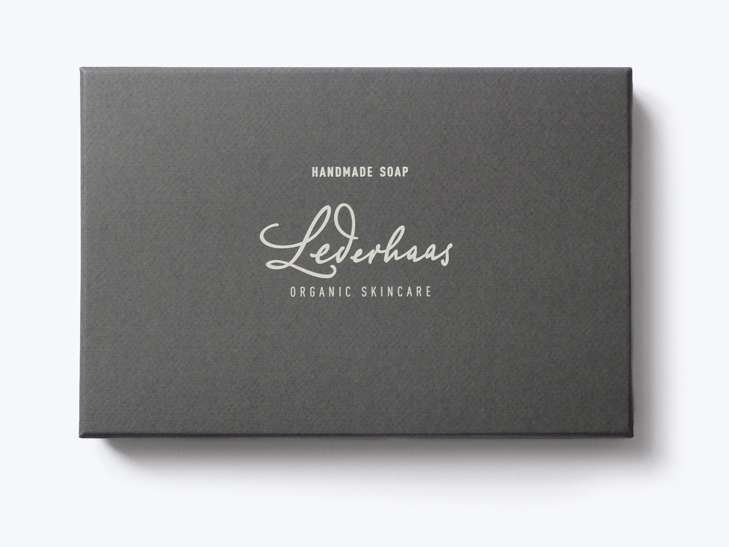 iration for the “Collection Box 1800” of handmade organic soaps was drawn from six romantic novels and short stories from around 1800. The logo was developed from the handwriting of the poet Novalis, which lends the cardboard box its romantic signature and underlines the artisanal character of the company. The elaborate box manufactured from natural materials plays with the contrast of a dark mineral-like outside and a bright white inside, which – after folding back the white parchment sheet – reveals organic natural colours.