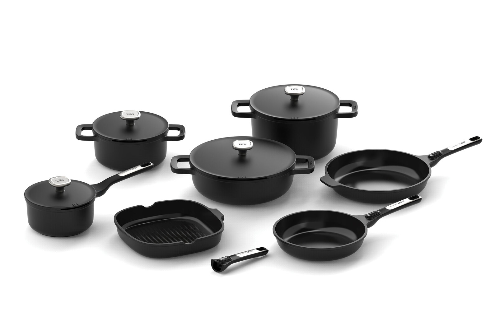 The Leo Phantom Cookware series has everything needed for excellent cooking results. The functional combination of high-quality materials and a sleek, minimalistic design distinguishes this collection of recycled cast aluminium pots and pans.