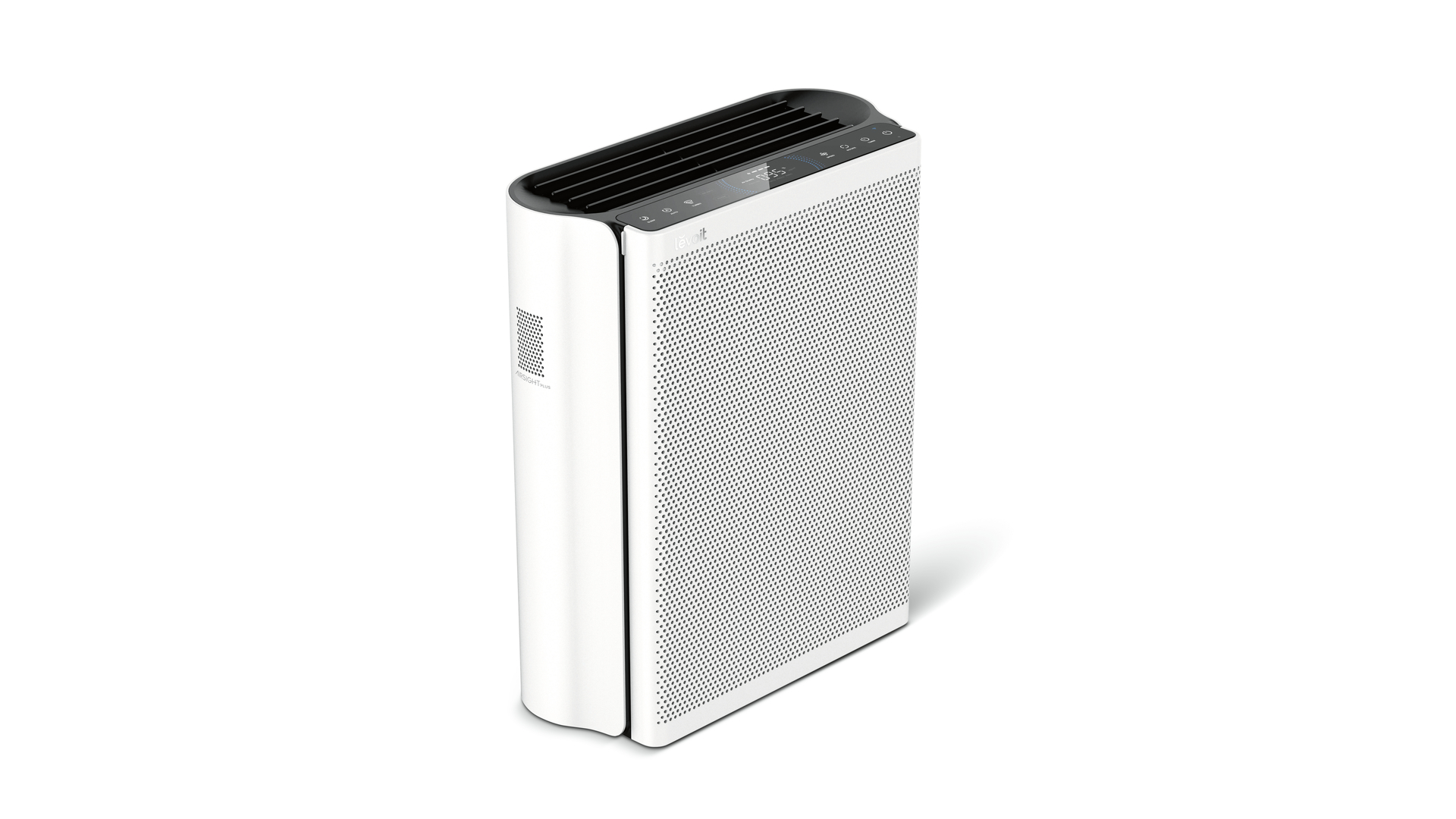 The Levoit EverestAir Smart True HEPA air purifier has a three-stage filtration system consisting of a pre-filter, a HEPA filter and an activated carbon filter. The system captures at least 99.97 per cent of airborne particles as small as 0.3 microns and helps to neutralise odours such as pet and cooking smells. With angled vents and an elegant grey colour, it blends unobtrusively into living spaces. Thanks to castors, it can be easily placed in the desired location. An app is available for operation, so that users can also control the device remotely and set the desired air quality.