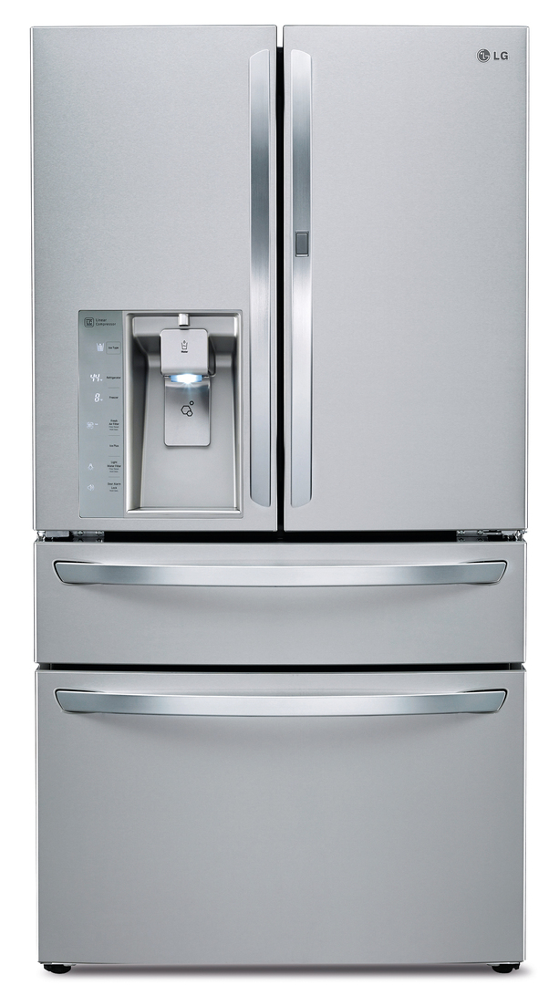 The upper two-winged door of this four-door refrigerator can be opened wide. The door-in-door design of the appliance divides the refrigerator door into several storage positions. Drinks and snacks which are more often needed can simply be stored on the outside and are readily at hand. A refrigerator drawer half-way up facilitates four-stage temperature regulation. The freezer provides storage space at three different sized levels.