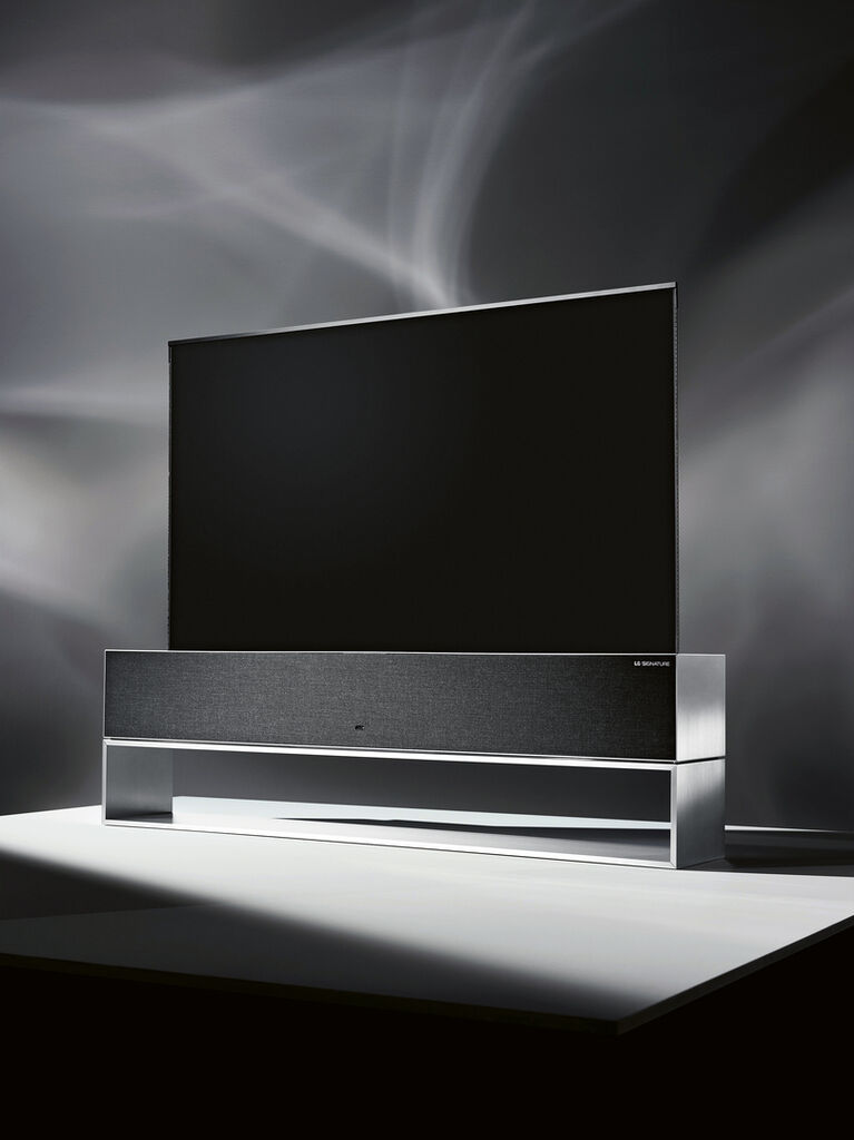 The LG Signature R9 OLED TV opens up new usage scenarios. Its high-resolution screen can be easily rolled out and up again as needed, which allows the device to be placed almost anywhere in a given room. Also, the brand-typical details of the LG Signature series have been skilfully implemented here in a wellproportioned and balanced design. Highly aesthetic and functional, this TV embodies a perfect merger of technology and design.