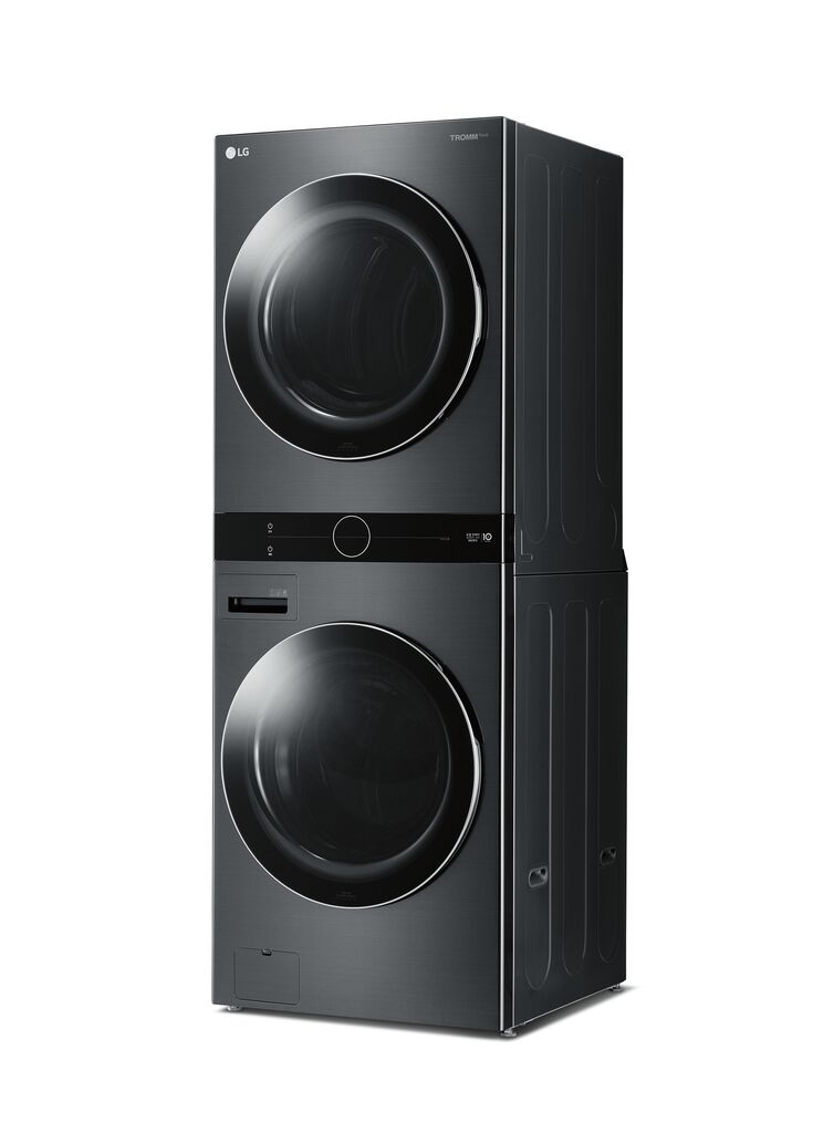 Designed as a space-saving combination, the LG WashTower ensures convenient cleaning and drying of laundry. To reduce the overall height, both appliances can be controlled with just one display, which has been placed between the washer and dryer. This means that the upper unit can also be easily reached and loaded. The homely colour scheme and flat front create a calm appearance that fits well in a variety of rooms.