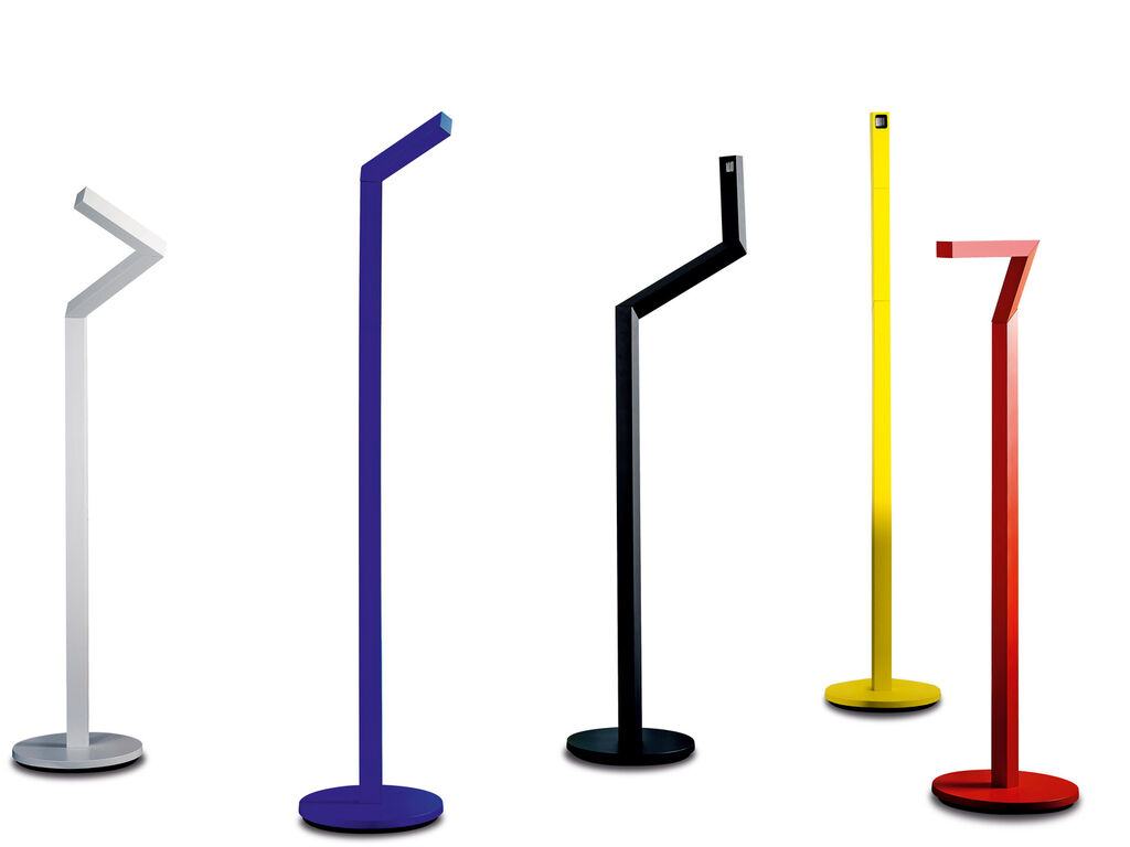 Inspired by the comic figure La Linea of the Italian Osvaldo Cavandoli, Nick-Knack is a playful, versatile floor lamp which can be made into 16 different forms, according to mood. By means of two angled hinges the lamp can be bent by hand – for direct or indirect light. Six dimmable, powerful LEDs spread a warm-white light. The lamp is available in various colours and a soft-touch version.