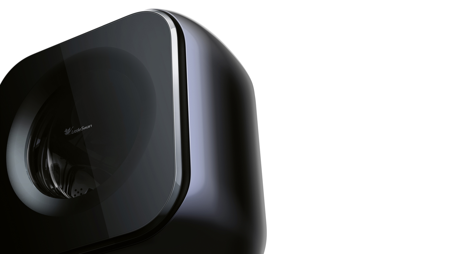 With its soft, rounded contours, the Little Swan washer-dryer breaks with traditional washing machine design and achieves a unique aesthetic.
