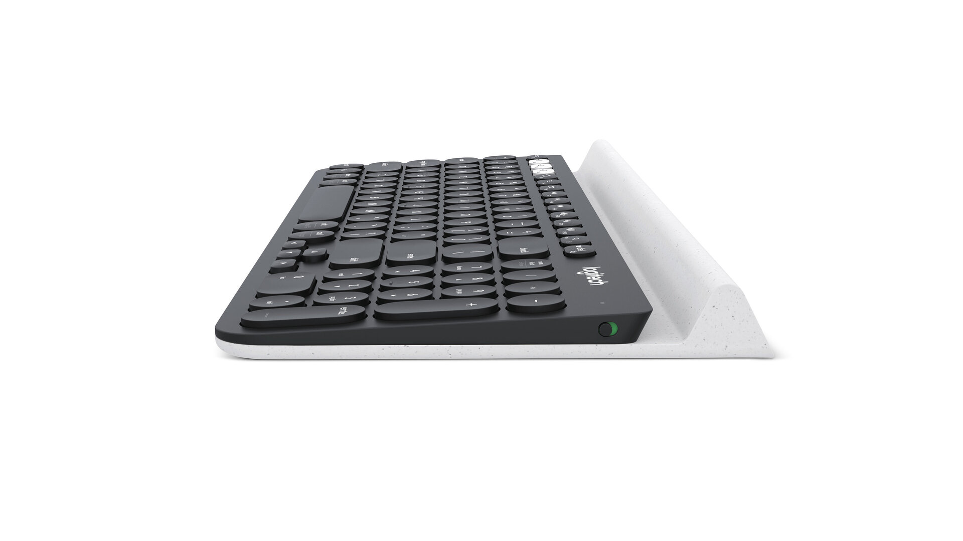 The Logitech K780 keyboard embodies an entirely new version of a cordless keyboard. It is also highly convenient for use with smartphones and tablets – allowing connecting of up to three devices at the same time. The design of its numeric key block and the graphical implementation of the key lettering are impressively well solved. In addition, the keys are pleasantly large and very quiet when typing. All the elements of this keyboard merge to form an artistically attractive unity.