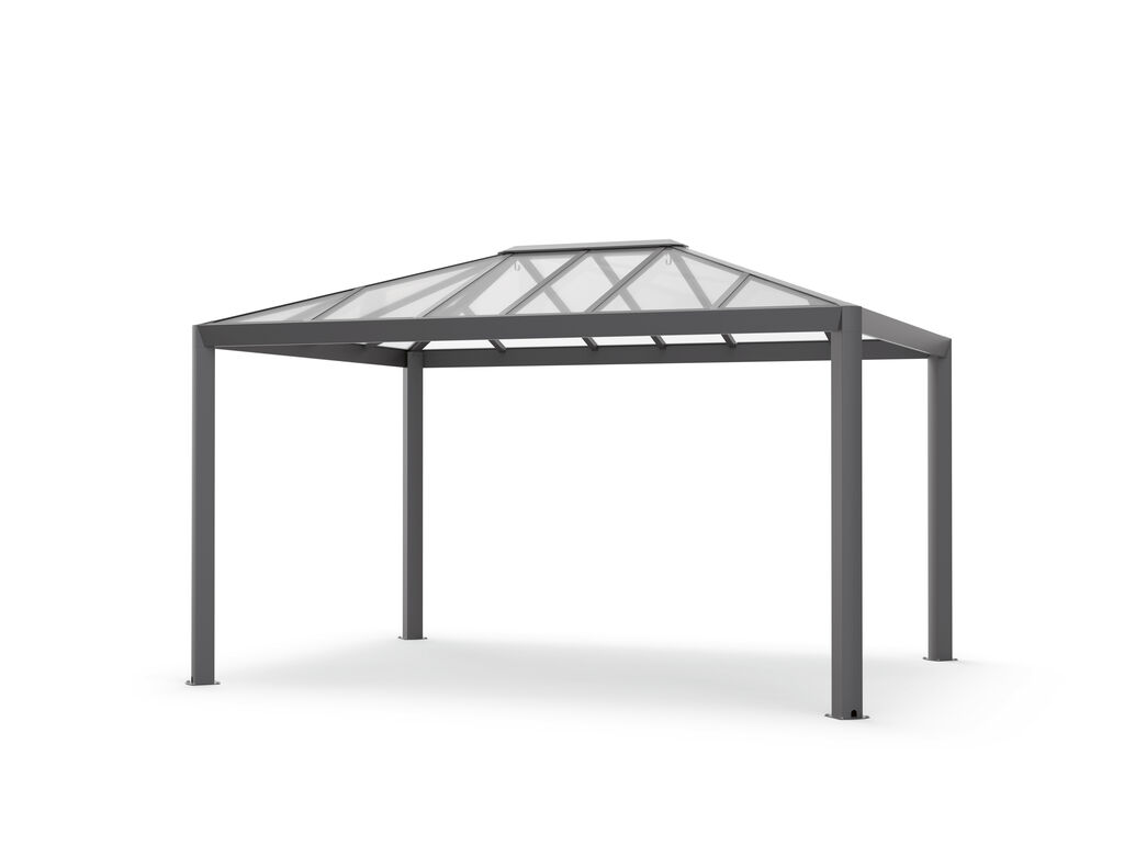The design of the LUMA garden pavilion is characterised by inclined planes and concave surfaces. The combination of precise lines and seamless transitions creates a timeless yet expressive aesthetic. Transparent roof elements and the absence of diagonal bracing give the pavilion an open, airy appearance. Delivered as a compact kit, the pavilion is easy to transport and assemble, with minimal visible fasteners. In addition, a practical rainwater drainage system is integrated into the legs.