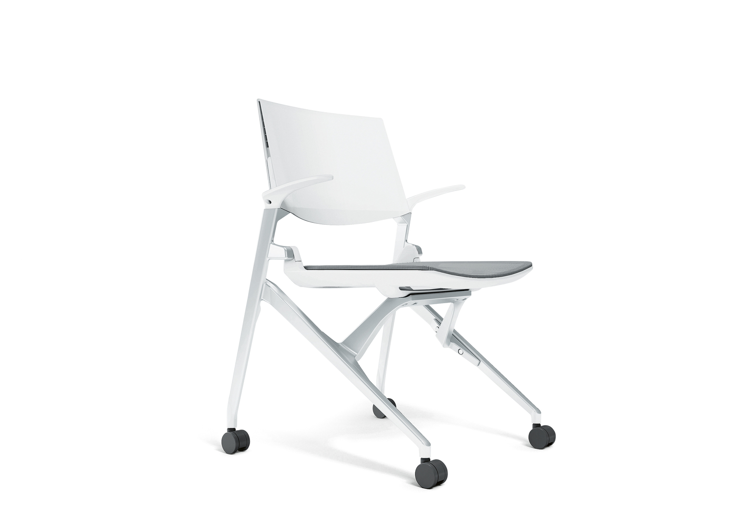 The Marca chair, marked by a design of elegant purism, practically enriches the office work experience. It is well proportioned and has been well thought out in every detail. Extremely functional and featuring a simple folding mechanism, it can be easily stacked and stowed away. In addition, it is equipped with castors and thus easily adapts to any changes in the work environment. This contemporary looking chair offers users a high level of ergonomic comfort even when sitting for long.