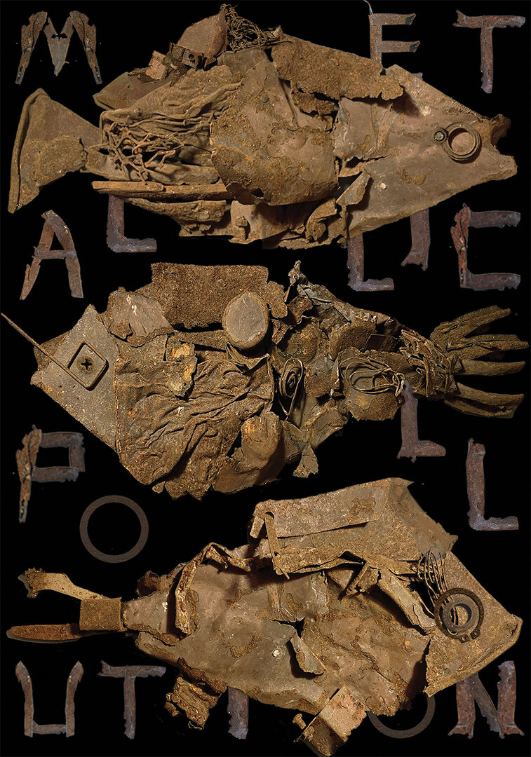 The artwork Metallic Pollution creatively incorporates rusted metal hardware tools as its main compositional elements. The artwork meticulously captures the destructive impact of pollution on marine ecosystems through skilful combinations and arrangement, employing visual language to evoke contemplation about the importance of environmental preservation. Red Dot Award: Design Concept | Concept | Visual Communication