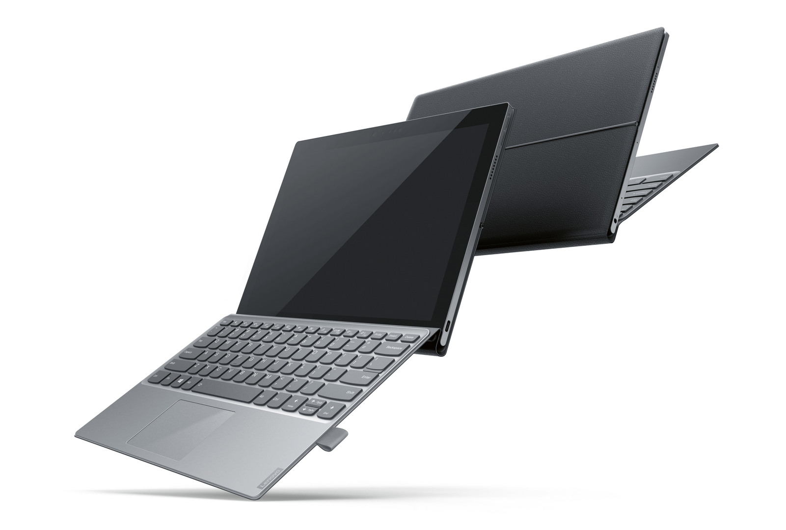 The Miix 630 is an ARM-based notebook with detachable keyboard. A particular feature is the magnetic keyboard case made from breathable fabric whose upper part can be folded downward steplessly to support the screen when used as a tablet. Without the keyboard, the tablet weighs merely 780 grams and is only 7.3 mm thin, so it can be taken along easily and held in the hand comfortably. Moreover, the long battery runtime of up to 20 hours gives the user a high degree of flexibility.