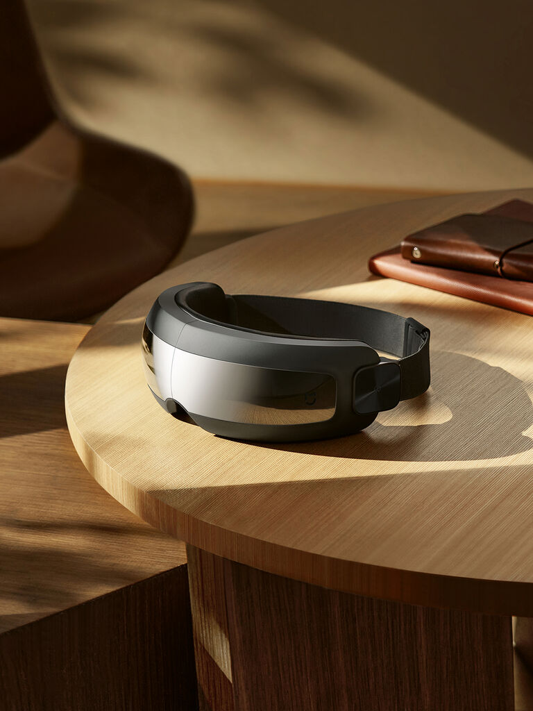 This futuristic-looking eye massage device boasts dual-layer air chambers that simulate a gentle and professional finger massage. It focuses on eight acupressure points around the eyes for targeted and fast fatigue relief. Another beneficial feature is the heat compress function. Thanks to the airbag design, the device easily adapts to different face shapes. It also has NFC connectivity for easy smartphone operation and a semi-transparent window for visual awareness.