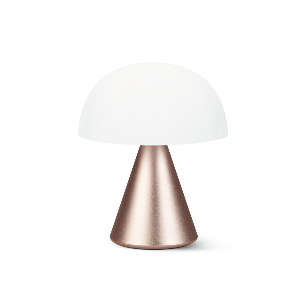 Mina M is a mobile lamp that is easy to transport thanks to its compact size and can be placed on a bedside table, desktop or patio. The water-resistant housing is characterised by an aluminium base and a mushroom-shaped lampshade. A touch control makes dimming and changing between the nine LED light colours comfortable and easy. The luminaire charges via a wireless charging station or a USB-C charging cable and boasts a battery life of up to 24 hours.
